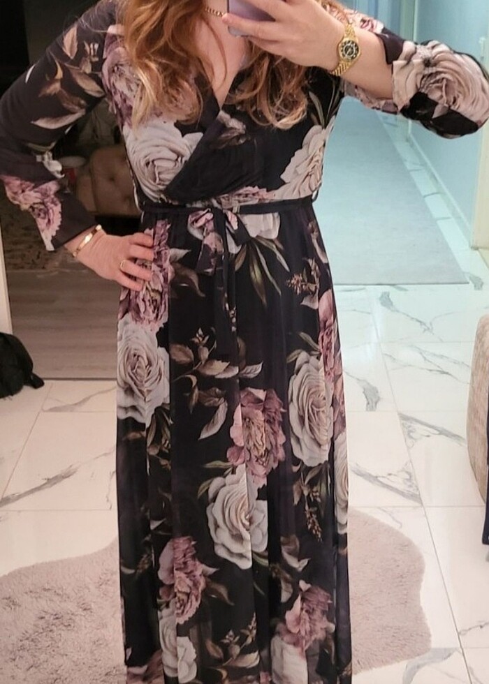 Uzun çiçekli şifon elbise