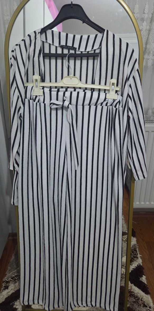Uzun Çizgili kadın 2 li takım Pantolon ve hırka