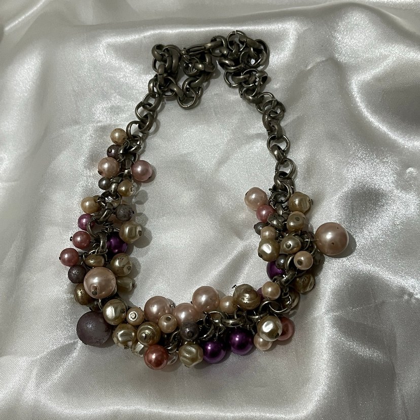 Uzun, çok renkli boncuklarla süslenmiş, vintage esintili bohem tarzda desenli kolye. Romantik akşamlar için uygundur.