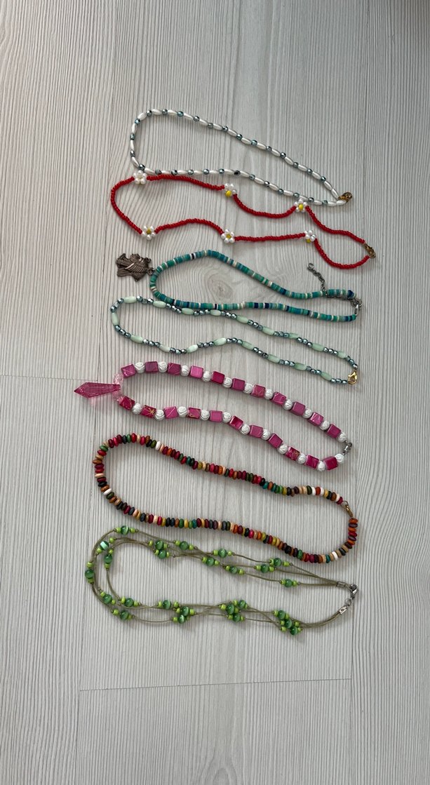 Uzun, çok renkli boncuklardan oluşan, nakış desenli bohem tarzda günlük kullanıma uygun kolyeler. Toplam fiyattır