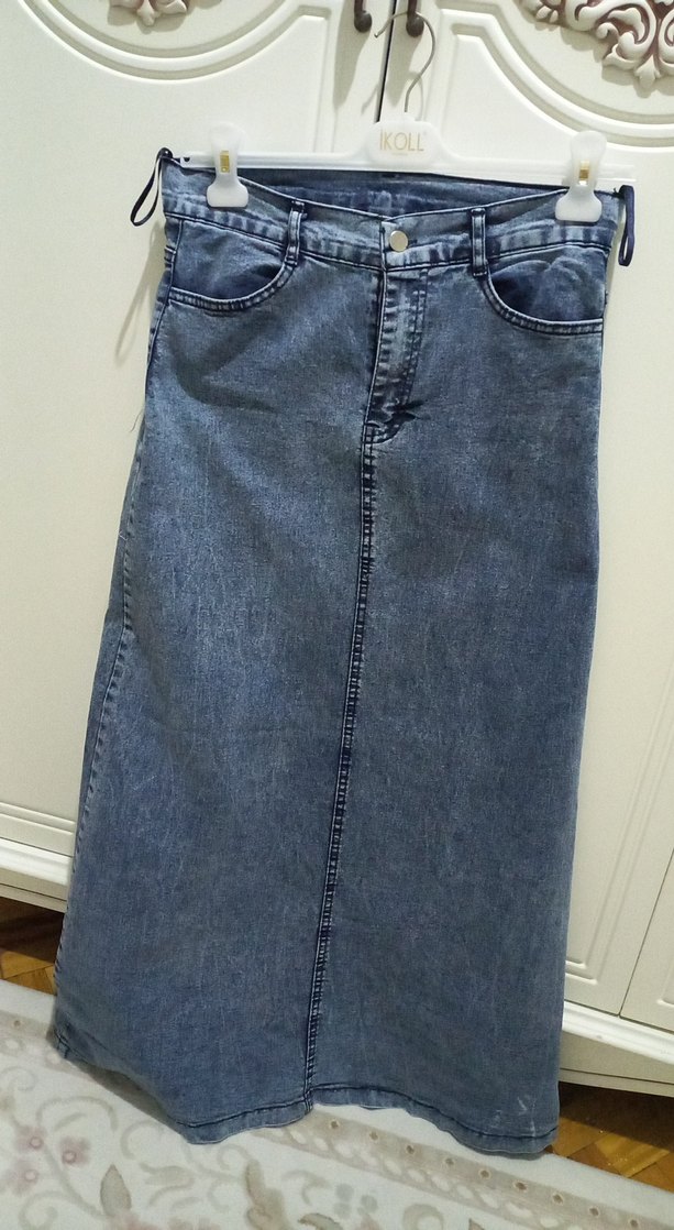 ufak bi lekesi var aldigimda oyleymis cikmiyor resimde belli bana basen kismi dar geldigi icin satiyorum hic giymedim... Gri tonlarında midi uzunlukta, bol kesim ve desen içermeyen denim kadın eteği, günlük rahat ve şık bir tercih sunar.