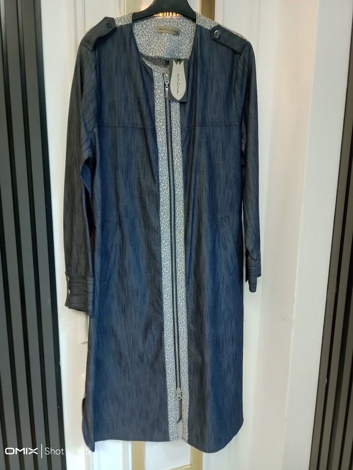 Uzun boylu, fermuarlı, uzun kollu, regular fit denim kadın kaban. Mavi renkte, çentikli yaka ve günlük sokak stili için uygundur.