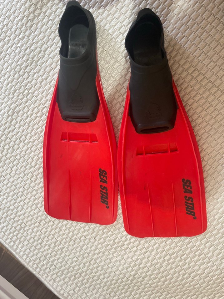 Kırmızı renkte, lastik malzemeden yapılmış erkek su ayakkabısı, Velcro kayışlı ve SEA STAR yazılıdır. Spor ve athleisure tarzına uygundur.