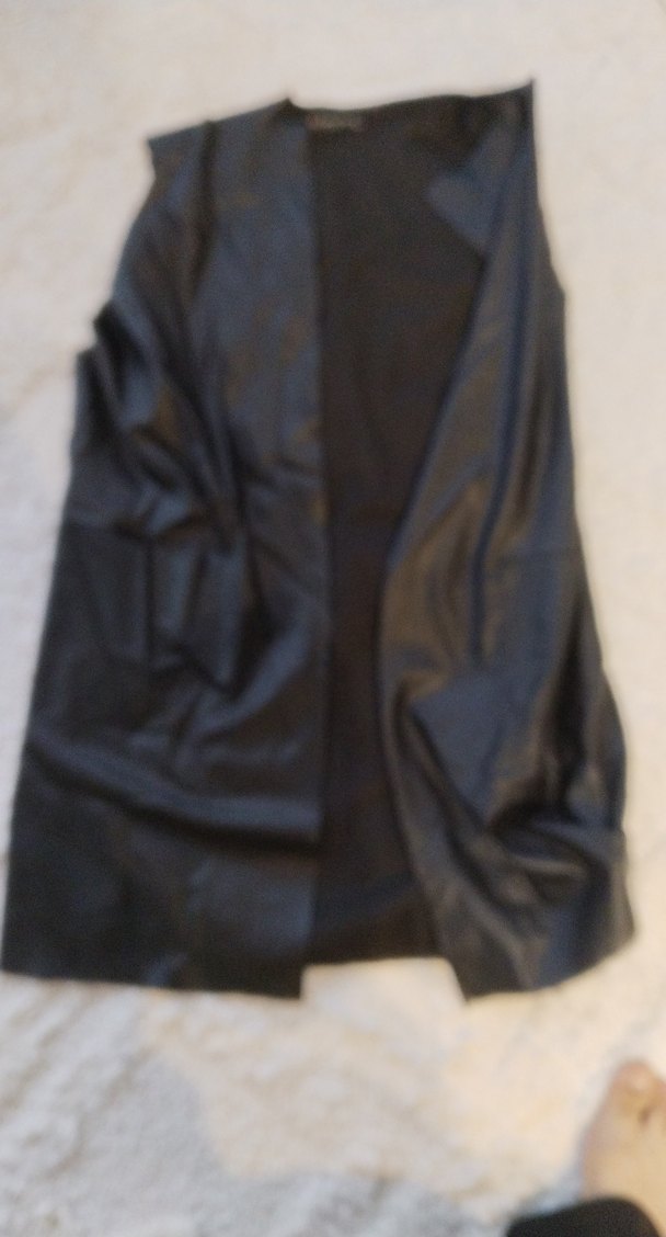 Bu siyah deri yelek, drapeli ve kesimli yakalıdır. Kolsuz, uzun boylu ve dar kesimdir, gotik tarz için uygundur.