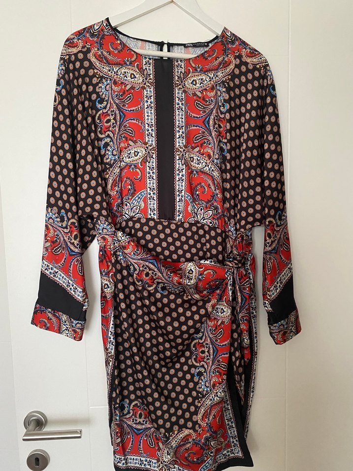 Uzun, bol kesim kadın kimono, uzun kollu ve yuvarlak yakalıdır. Sentetik kumaştan yapılmış, çok renkli bohem desenlere sahiptir, romantik akşamlar için uygundur.