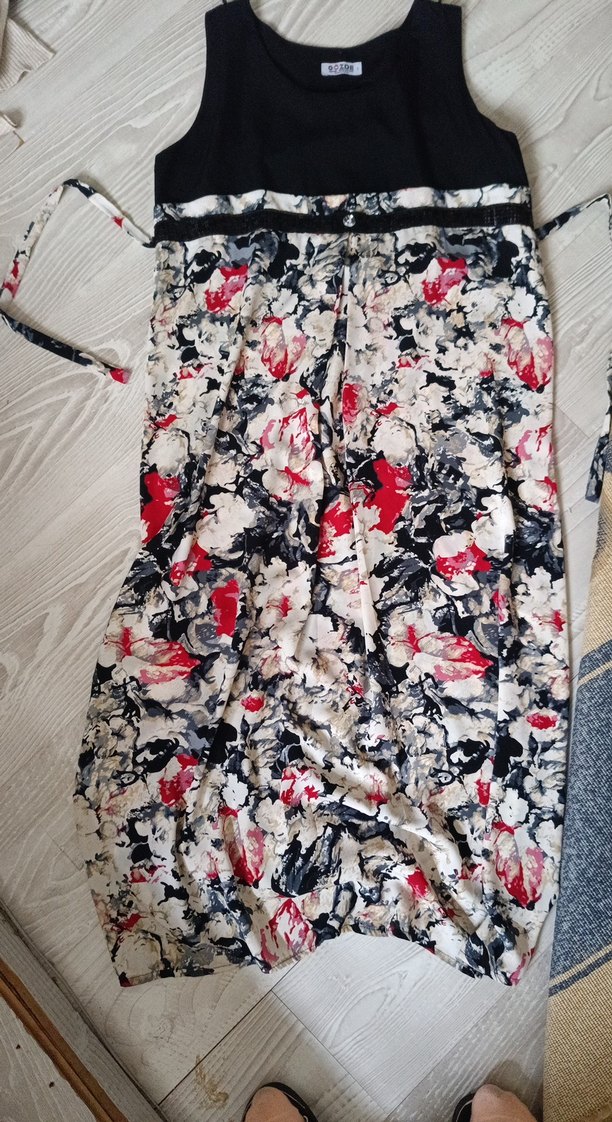 Yumuşak kumaştan, bol kesim ve drapeli uzun hamile eteği, çok renkli çiçek desenleriyle günlük kullanıma uygundur.