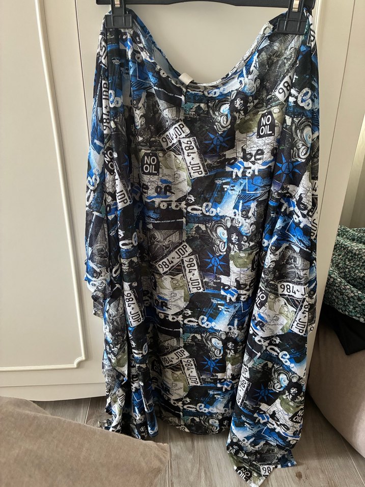 Mavi ve gri tonlarda baskılı sokak stili ve avangart moda için uygun. Tül havuz deniz giyim