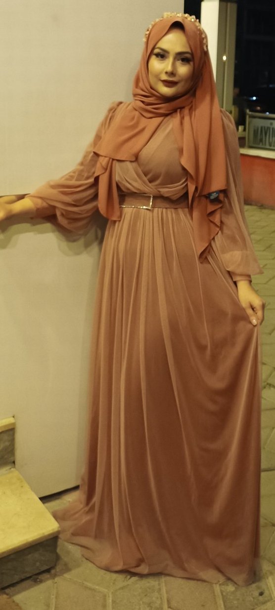 Uzun Drapeli Kadın Abiye Elbise