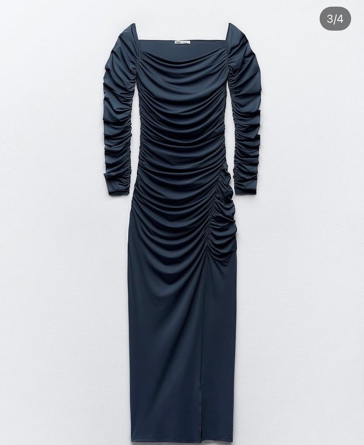 Drapeli detaylı yırtmaçlı elbise