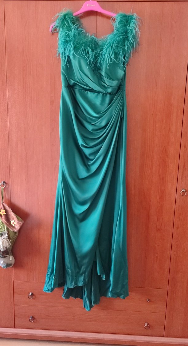 Parlak turkuaz kumaştan, drapeli ve straplez, uzun ve kolsuz olan bu dar kesim abiye elbise, gösterişli partiler için uygundur. Sadece 2 saat giyilmiştir.Butikten alınmıştır.