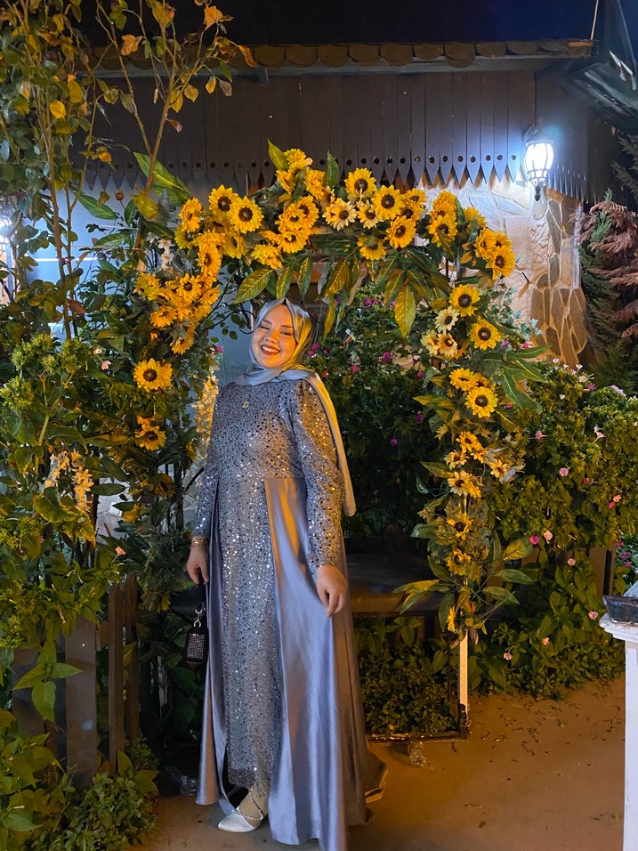 Uzun, Drapeli tesettür Gri Kadın Abiye