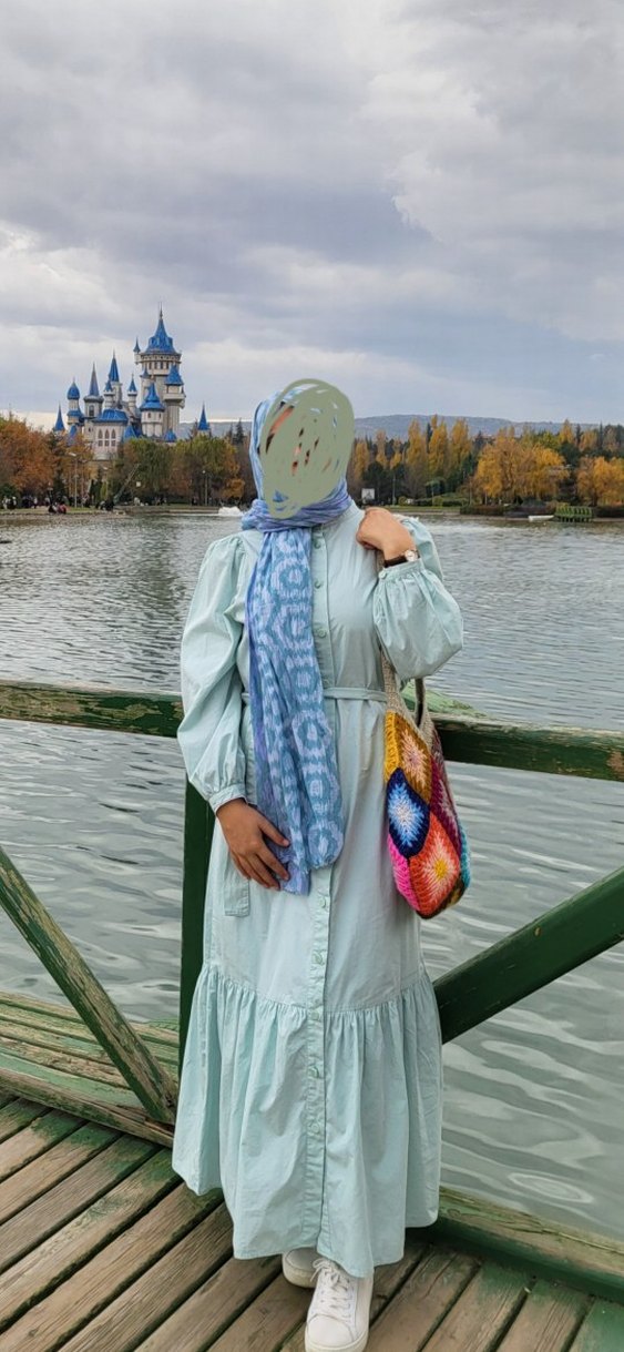 lcw a marka bi kez giyildi.utüsuz sadece yeni yikandigi icin.rengi cok soluk yeşil mavi arasi göründüğü gibi