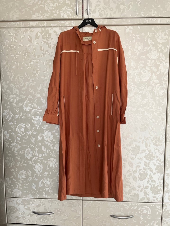 Uzun, bol kesim kadın elbisesi uzun kollu ve düğmeli ön kısmıyla dikkat çeker. Notlu yaka ve ipeksi kumaştan üretilmiştir, şık ve rahat sokak stili için uygundur.