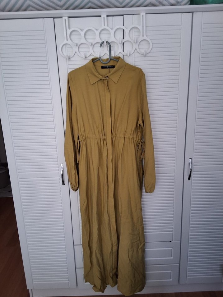 Fatma Atasoy markasına ait elbise. Yanlardan ayaralamlı ve boydan fermuarlı. Hiç kullanılmadı. Rwngi yağ yeşili gibi