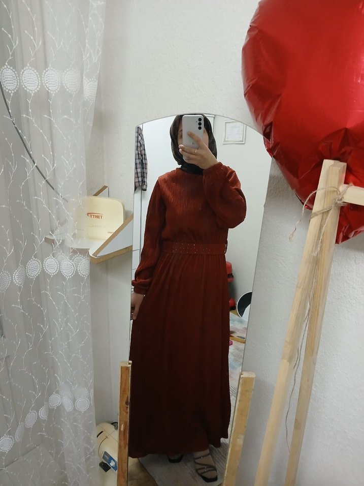 Bordo renkli, yüksek yakalı ve uzun kollu bu uzun elbise, yumuşak sentetik kumaştan üretilmiştir. Salaş kesimi ve drapeli detayıyla günlük kullanıma uygundur. hafif mevsimlik gibidir. marka temsilidir rengi taba rengi gibi çok güzel kullanmadığım için satıyorum. 1 defa giydim 40 beden ama ben genelde 36-38 giyerim bana oldu beli lastikli olduğu için.