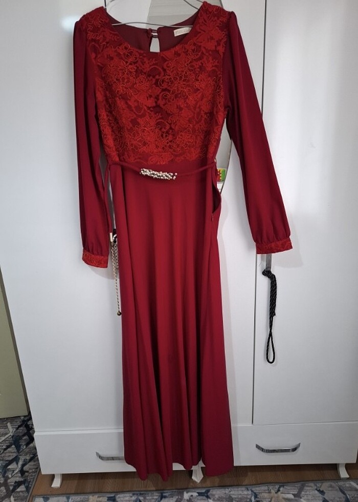 44 beden yandan fermuarlı hiç kullanılmadı Renk bordo ama ışıktan dolayı kırmızı görünüyor