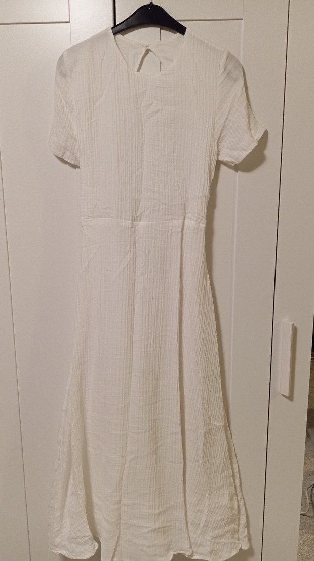düz beyaz bisiklet yaka arkası dekolteli uzun elbise