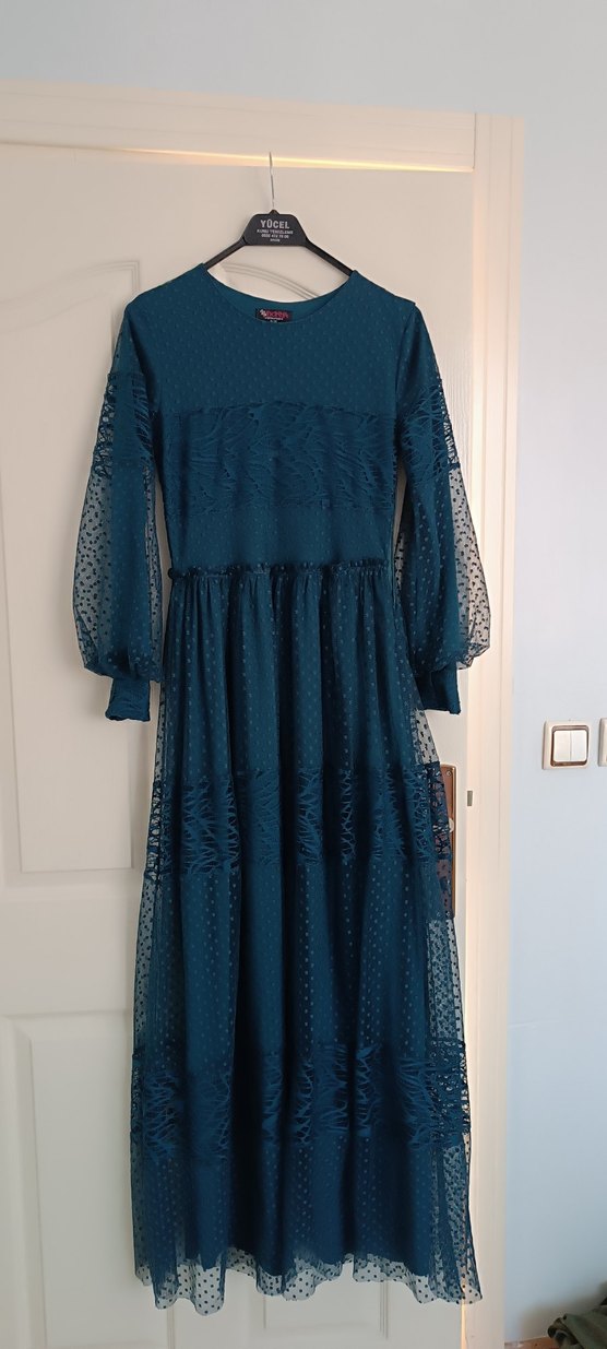 boydan uzun elbise iç astarlı kumaş üstü tül şık ve güzel çok az kullanıldı