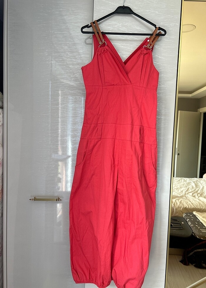 Uzun koton kumaş elbise hiç kullanılmadı 42 beden yazıyor fakat kalıp dar 36-38 beden için uygundur