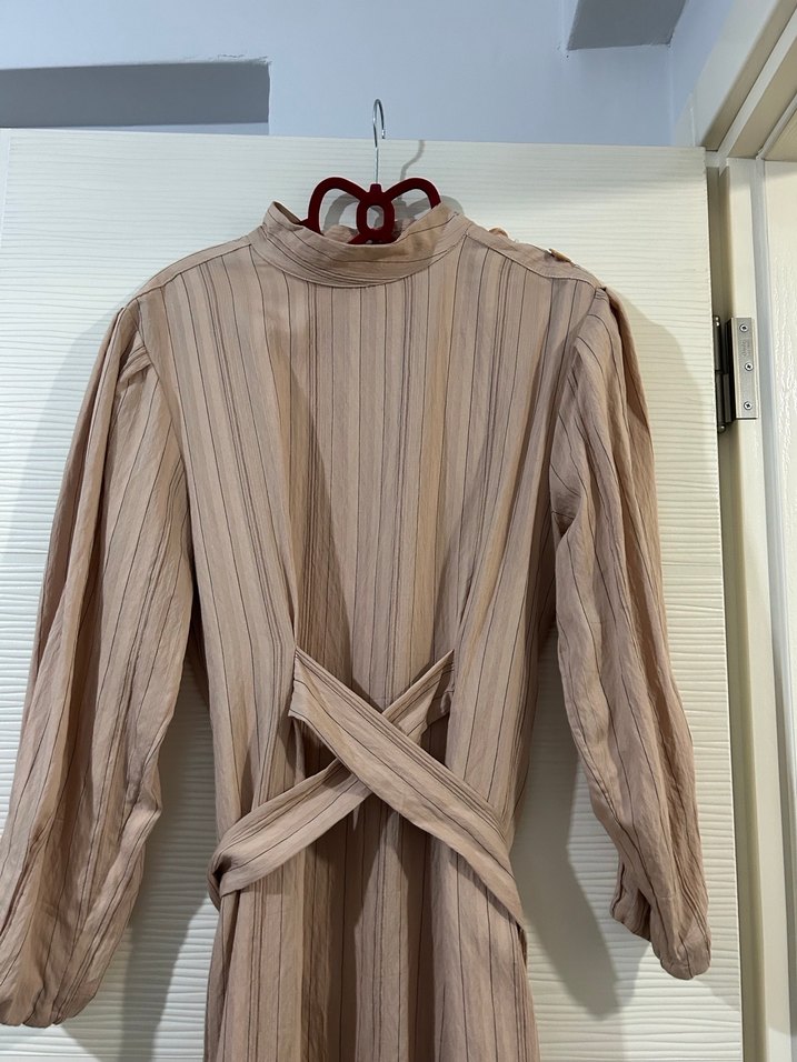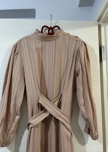 Bej renkte, elbise. Yüksek yakalı ve uzun kolludur, günlük kullanıma uygundur. Boy 1.35