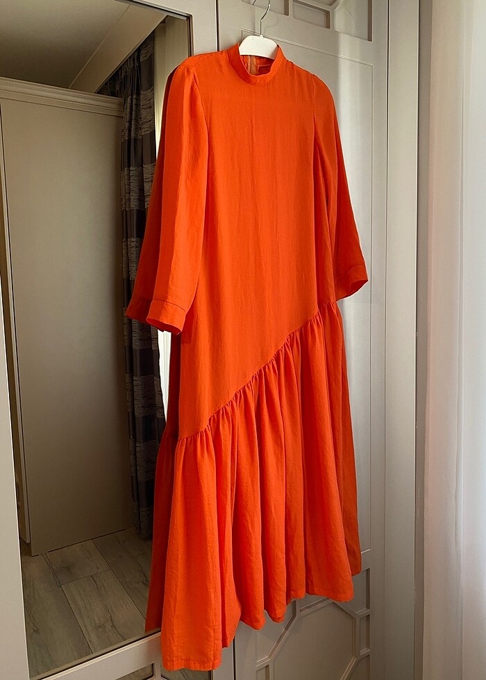 3 kez giydim. Kilo aldığım için satıyorum. Aşağıya doğru bollaşıyor. İncecik ve terletmiyor. İç göstermiyor. Yaz için çok kullanışlı. Özel dikim ama small bedene eş değer. Boy 1.34 basen 120 İki koltuk altı 50 cm