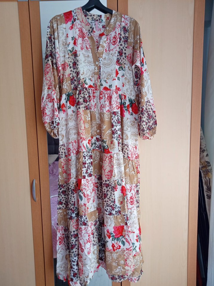 arkadaşım dükkan kapatıyor mağazadan daha uyguna verecek.Çiçek desenli, uzun ve bol kesim bohem elbise. Hafif renklerde, uzun kollu, V yaka ve düğmeli ön detaylı, yumuşak sentetik kumaştan yapılmıştır.çwşit çeşit renkli beğendiğini sorabilirsin hiç giyilmedi
