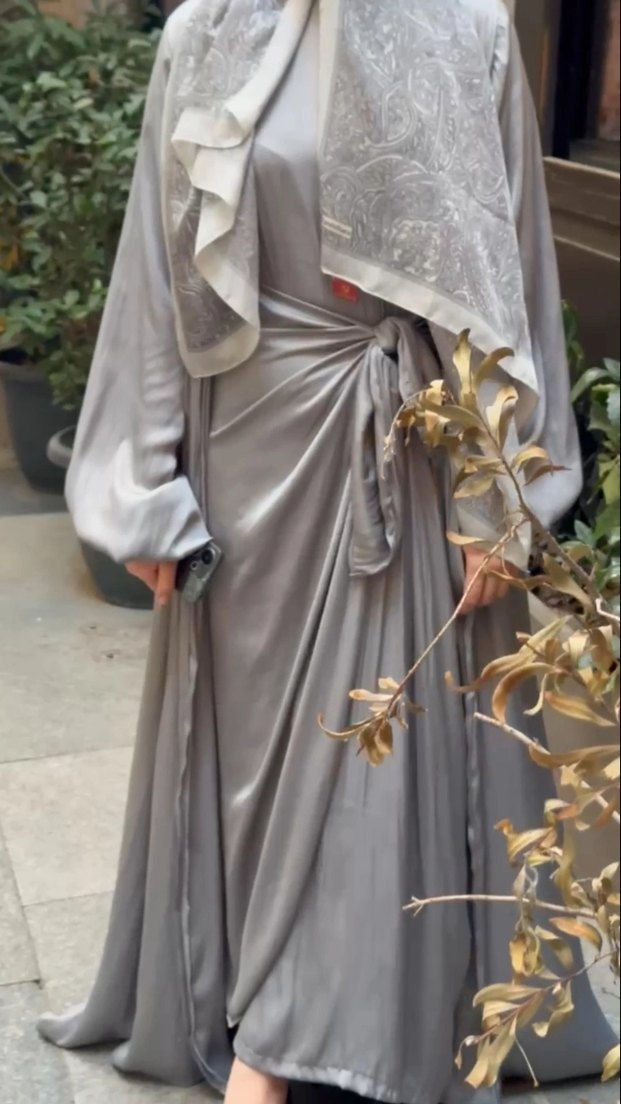 Uzun Gri Abaya Takımı