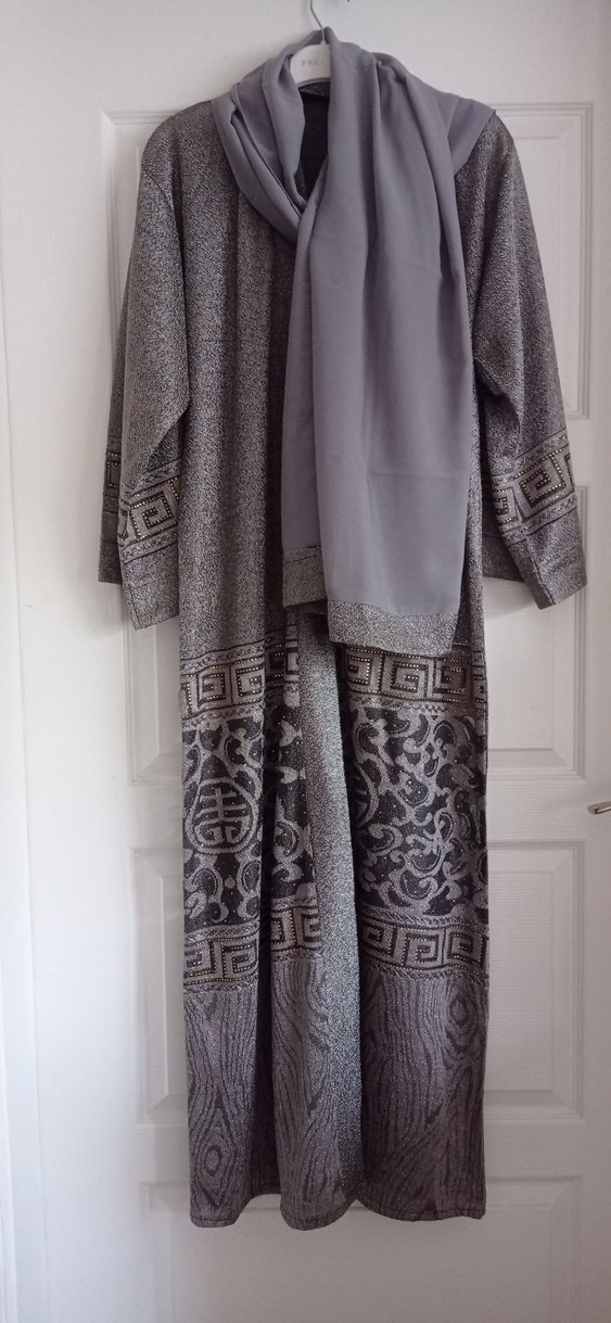 Uzun Gri Desenli Kadın Abaya