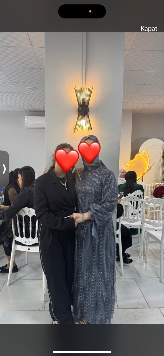 Uzun Gri Desenli simli Tesettür Nişan Elbisesi