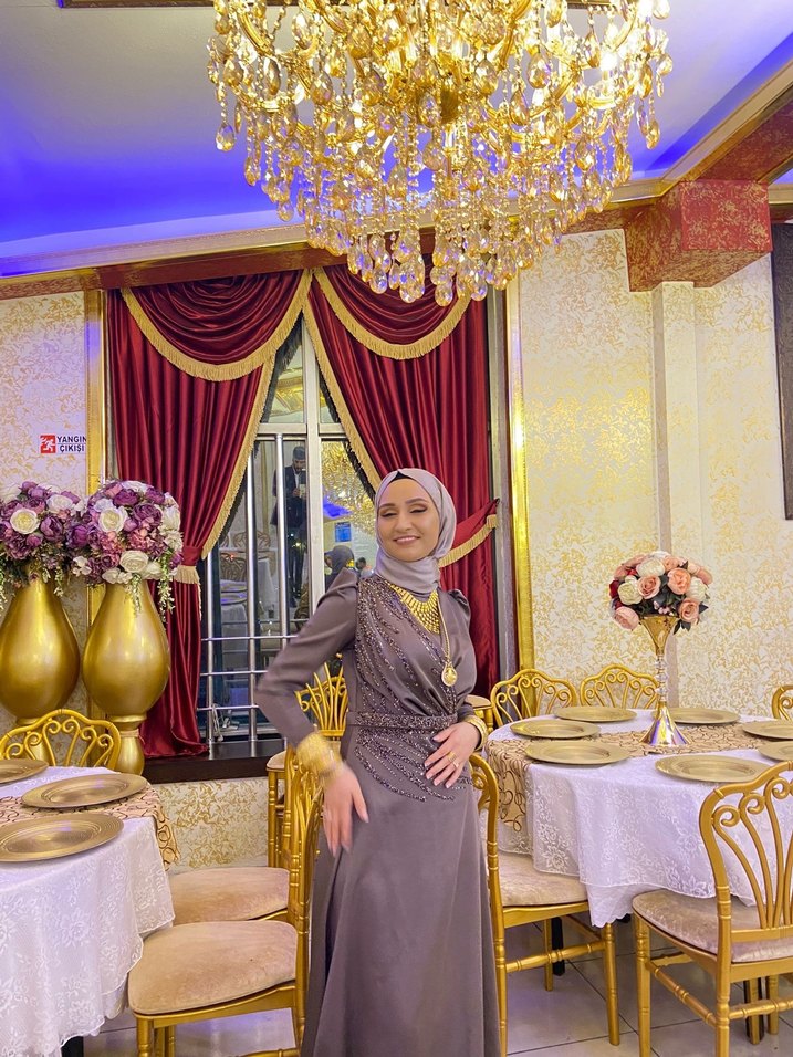 Uzun Gri Drapeli Tesettür Abiye bir kere giyildi