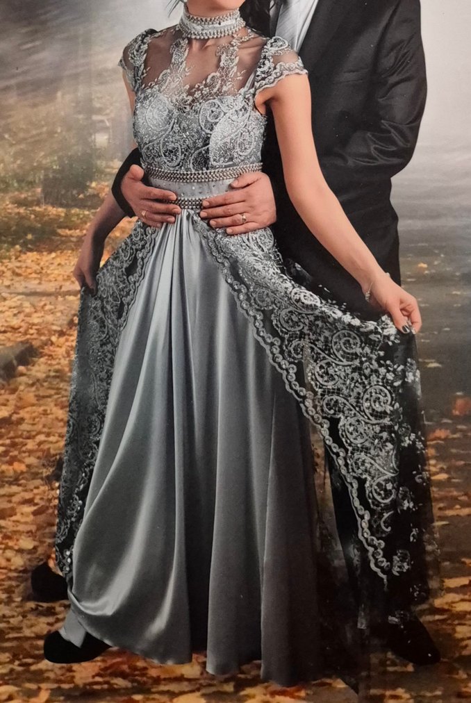Sadece bir kere giyildi, yıkanmış temiz ürün. Fiyatta anlaşabiliriz. İnce işlemeli ve drapeli detaylara sahip, ve uzun gri düğün, nişan elbisesi. Klasik zarafeti dramatik bir tarzla birleştirir. Düğün, nişan, kına vb.
