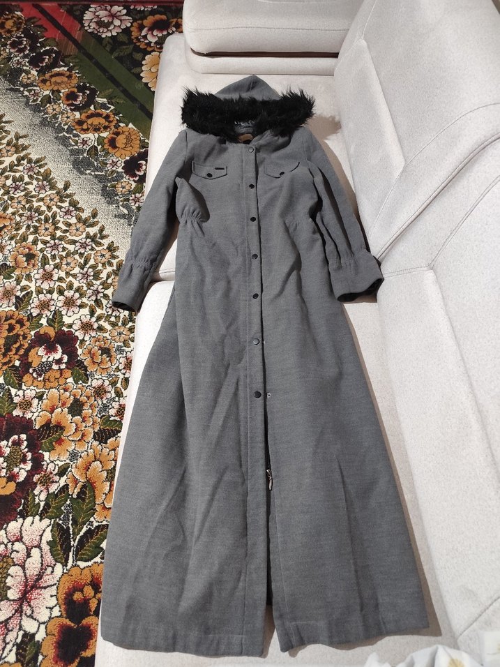 Uzun, bol kesim gri kadın kaban, bedeni 46 yazıyor fakat 38-40 bedene uygundur. hiç kullanılmadı sıfır bir ürün. marka temsilidir
