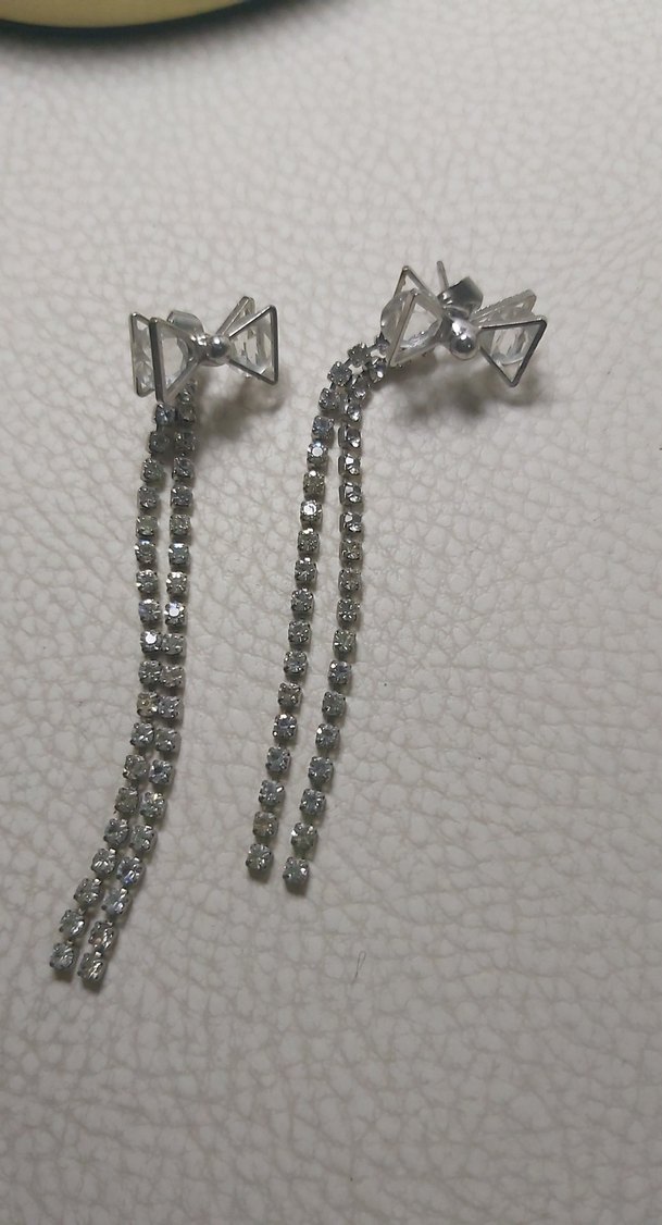 Uzun gri renkli, payet işlemeli ve nakış detaylı küpeler. Rock punk tarzıyla düğünlerde kullanılabilir, vintage ve avangart bir görünüm sunar.