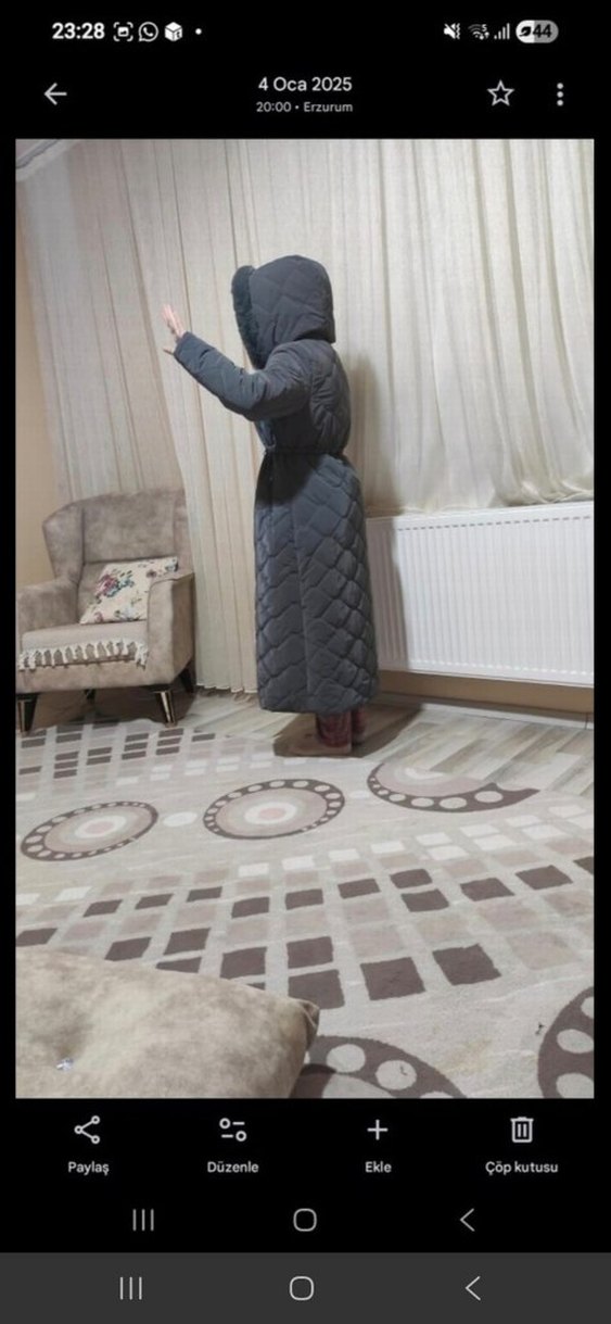 Yumuşak kumaştan yapılmış, yüksek yakalı ve kürk detaylı uzun gri, vücuda oturan kadın kışlık mont. Günlük kullanım için sıcak ve sade tarz sunar. ❄️çok az giyildi yepyeni