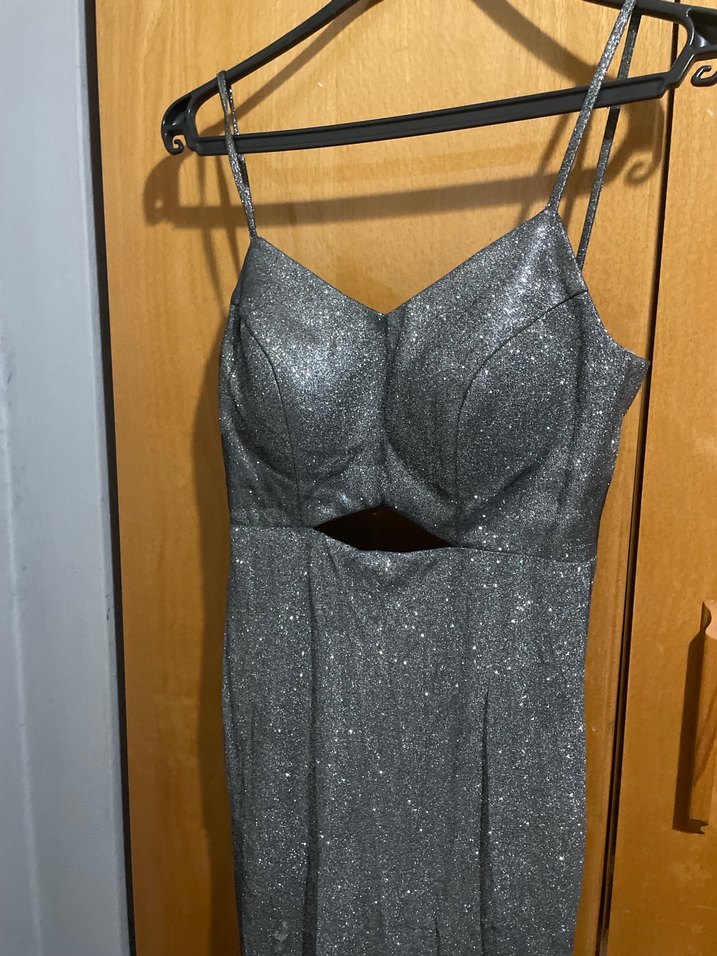 Bu ince askılı, V yakalı ve yırtmaçlı uzun gri gece elbisesi, fit kesimiyle romantik akşamlar için şık ve göz alıcı bir seçenek sunar. ✨