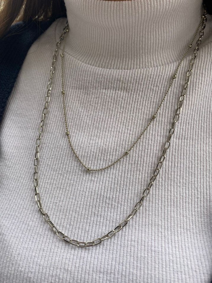 Uzun gri renkli kadın kolyesi, detaylı zincir yapısıyla minimalist ve bohem tarzda, günlük kullanıma uygundur.