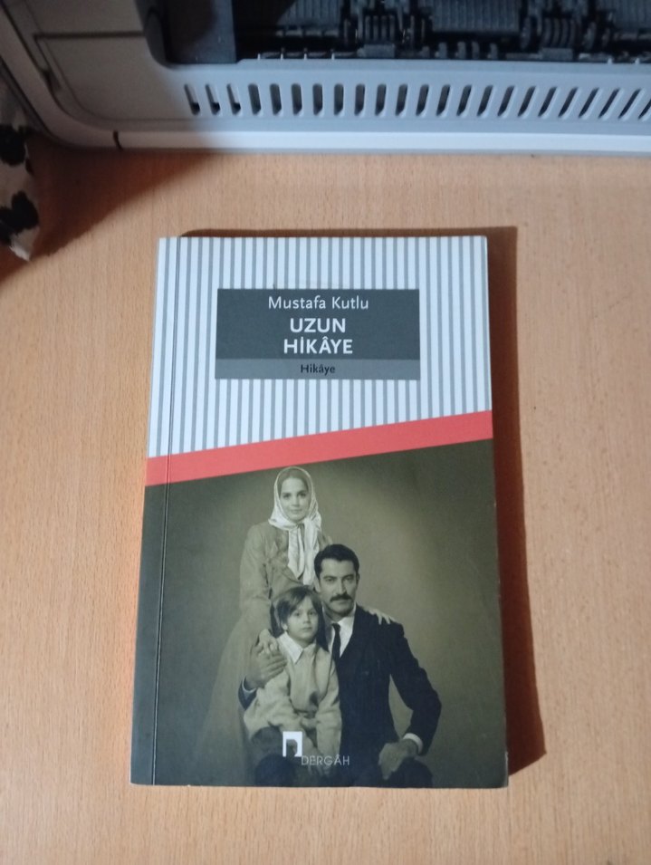 Mustafa Kutlu'nun Uzun Hikaye kitabı, detaylı bir biyografi anlatımı sunar. Kapakta eski bir aile fotoğrafı yer alır.