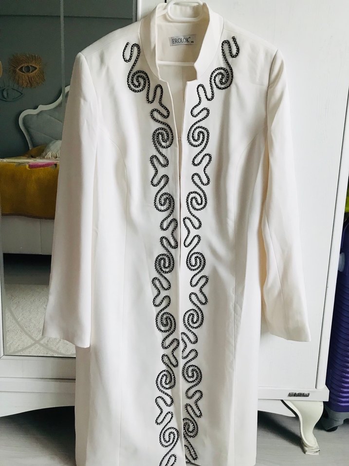 Uzun tesettür ceket.Ön kısmı boncuk işlemeli özel günlerde giyilebilecek şık bir ceket .Annem 2 defa özel günde giydi