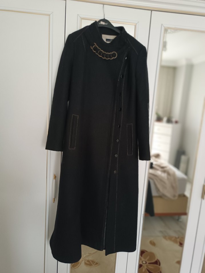 massimo donna, Uzun siyah kaban, keçe kumaşa sahiptir, ihyadan alındı, sorunu yoktur