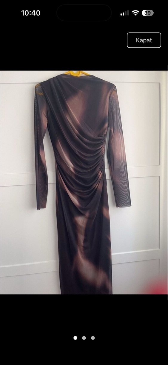 Uzun Kahverengi Drapeli Kadın Elbise