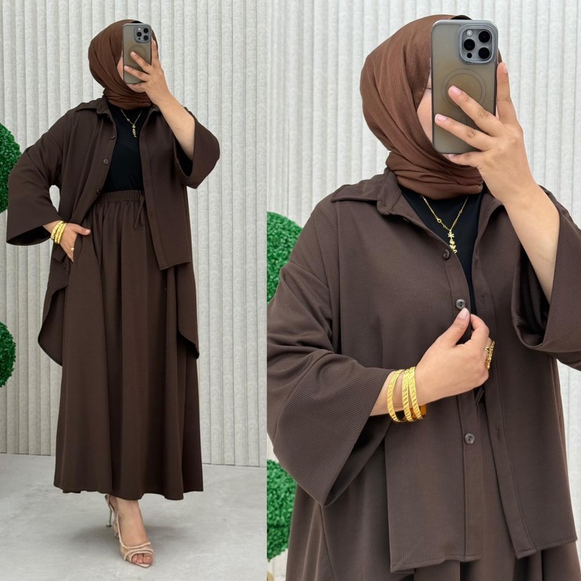 Uzun, salaş kesim, kahverengi, desen içermeyen kadın elbisesi, minimalist sokak modasına uygun uzun kollu.4065 Emine Etekli Takın 1 beden 38/46 2 beden 48/54 3 beden 56/60 uyumlu 1 beden göğüs 62 cm Basen 80 cm Kol boyu 40 cm Pazu 20 cm Tunik ön boy 60 cm Tünik arka boy 92cm Etek bel lastik açık 68cm Etek boy 95cm Etek cepli Salaş kalıp Burgu kumaş ✅ 1260 kargo dahil 2 adet 2300 tl kargo sahil
