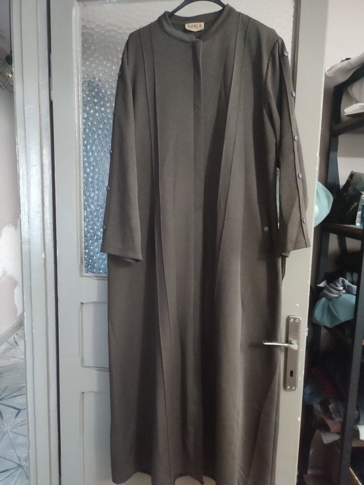 Uzun, bol kesim kahverengikadin pardösü, uzun kollu ve desen içermeyen minimalist tasarıma sahiptir. Normcore tarzına uygundur.