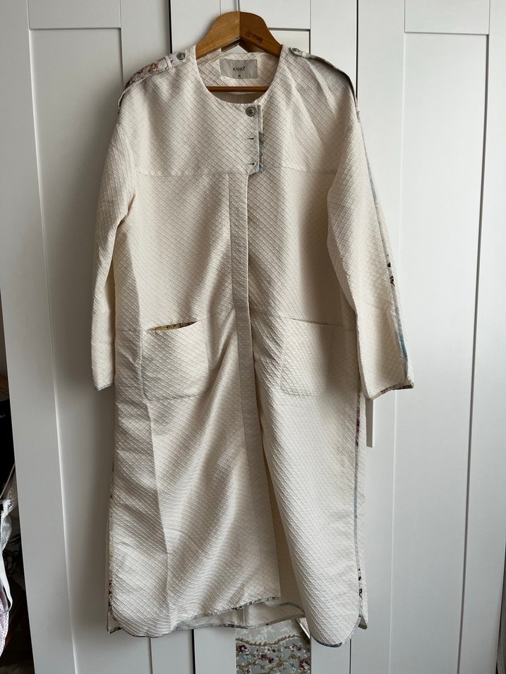Uzun kesim beyaz yazlık kap, düğmeli ön ve kesik yakaya sahip. Uzun kollu, düz kesim, desen içermeyen bohem Paris tarzı için uygun. Hiçbir sorunu yok. #tesettür #kap