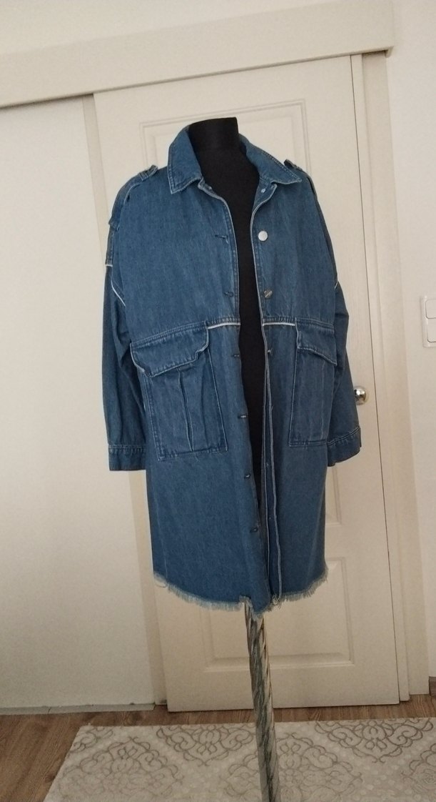 Uzun Kesim Düğmeli Kadın Kot Ceket