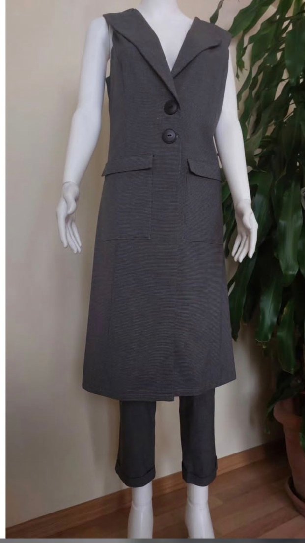 Uzun Kesim Gri Kadın Yelek ve pantolon