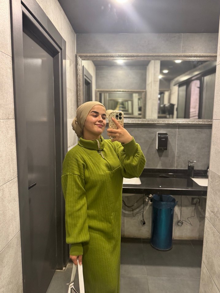 Ürün bi kere giyildi temiz Kadınlar için uzun kesim, bol kesim triko elbise. Balıkçı yaka ve uzun kollu, açık haki renkte sade ve rahat şıklık sunar.