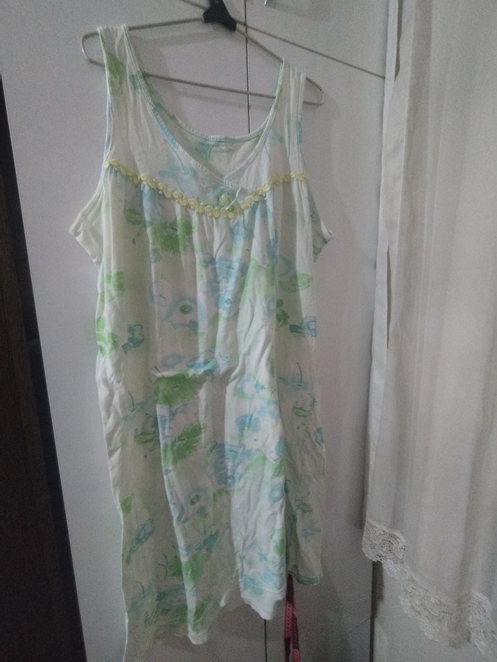 Bohem tarzda, kolsuz, bol kesim uzun kadın geceliği. Pastel tonlarda batik desenli, rahat ve yumuşak kumaştan yapılmıştır. 3XL