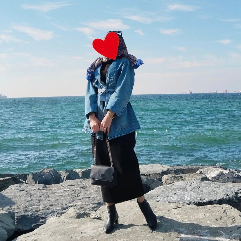 Uzun kesim, bol kesim mavi kot ceket. Notlu yaka ve bağlamalı detaylara sahip, batik desenlidir. Günlük kullanıma uygun rahat bir sokak stili parçası.