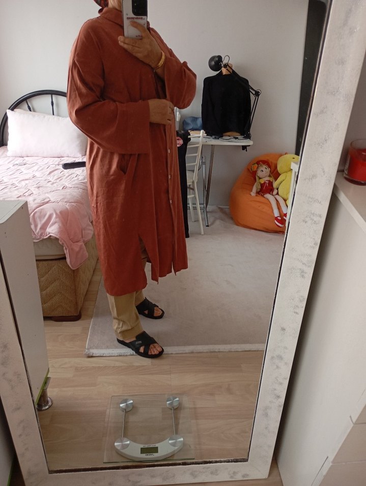 Uzun, bol kesim kadın tunik, drapeli tasarım ve kesik yakaya sahiptir. İpek gibi dokulu, camel renginde ve uzun kolludur. Rahat günlük kullanıma uygundur.