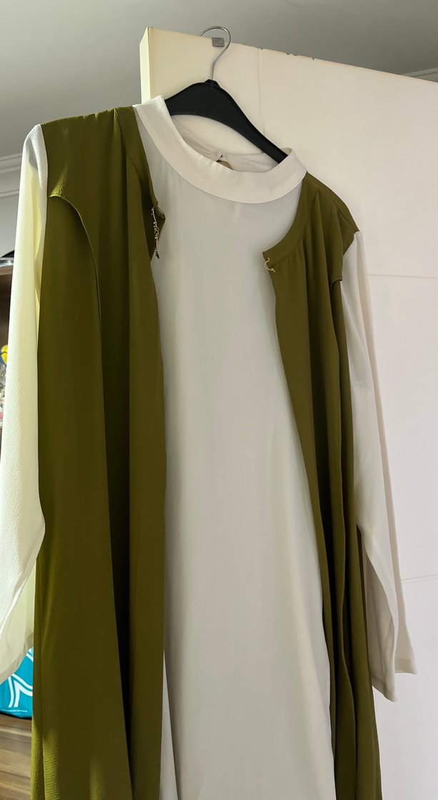 Uzun, kolsuz hamile tunik, salaş kesim ve yuvarlak yaka tasarıma sahiptir. Hafif sentetik kumaştan yapılmış, haki renkte, günlük kullanıma uygundur. Minimalist ve çağdaş tarzda.